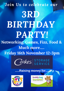 Deven: We’re having a 3rd birthday party on Friday 16th November. Cookes is a local family business, and so we pride ourselves on helping other local businesses. We’re inviting companies we’ve worked with, networked with or who just want to meet us, to celebrate with us and enjoy some relaxed networking at the same time.